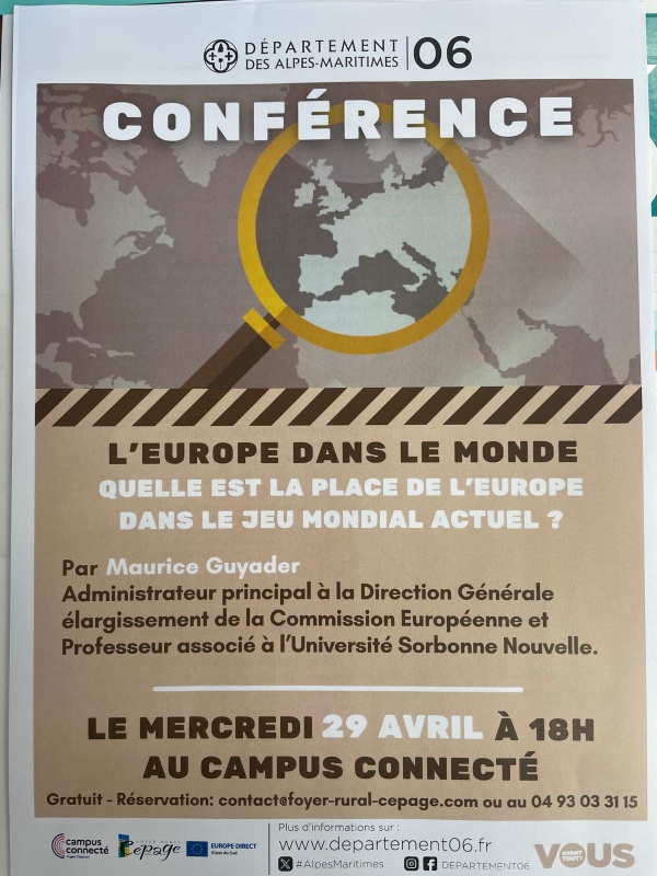 CONFERENCE SUR L’EUROPE – PUGET-THENIERS – Mercredi 29 Avril – 18 h au Campus connecté