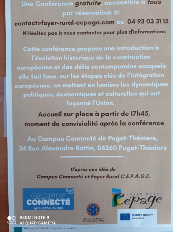L’EUROPE EN CONSTRUCTION Mercredi 28 janvier à Puget Théniers