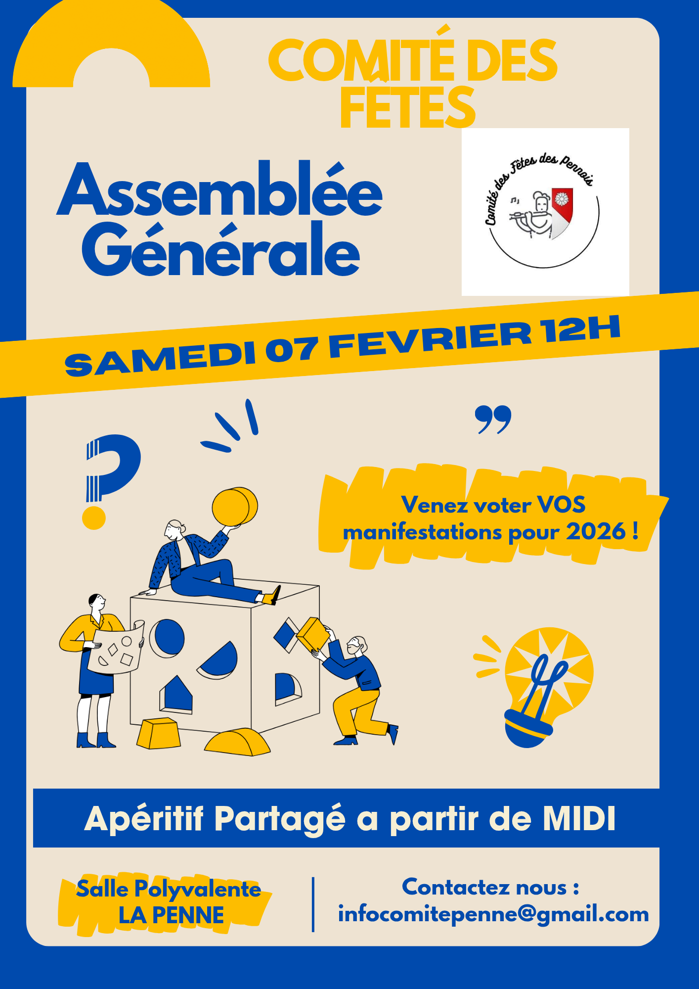 Le Comité des fêtes des Pennois a le plaisir de vous convier à son Assemblée Générale, qui se tiendra :